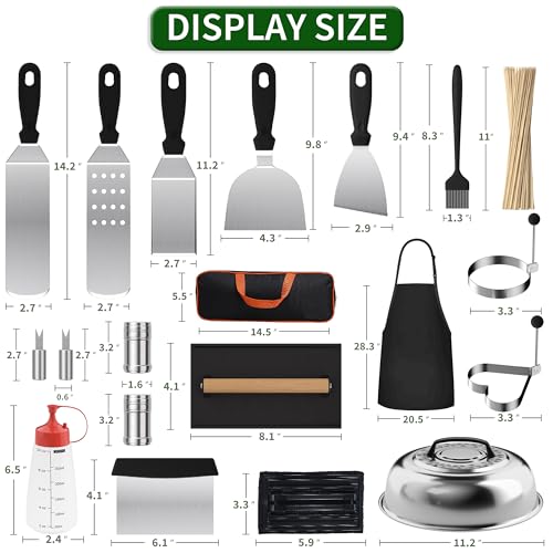 - 【Premium Quality】: Our Furnhome 120pcs Griddle Accessories Kit is crafted with heavy gauge stainless steel, ensuring durability and long-lasting performance. You can trust that our BPA-free, rust-resistant, and durable tools won’t crack or melt with long-term use. Say goodbye to flimsy tools that bend or break easily during outdoor grilling sessions.