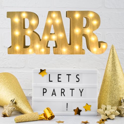 - 【Easy to Use】:BAR light up letters have an on/off switch on the back. Only 2 AA batteries (package without batteries), safe and convenient. Suitable for indoor and outdoor use. notice: please put it in a ventilated place for 24 hours after receiving it, because the product has the smell of original wood, and not everyone can adapt to this smell