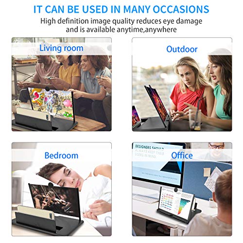 - 【HD Screen Amplifier】Take HD zoom optical technology, solid ABS plastic screen, 14 inch srceen magnifier effectively magnifying your phones screen by 3-4 times, makes the picture more clear, give you a different viewing enjoyment.