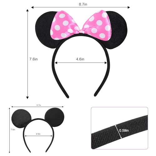 - MATERIAL:Made of soft, felt-like fabric while the ears have a cute pink dotted bow. With the size of 8.7 x 7.1 x 0.6 inches, this mouse ears headband fits for adults’ head as well as toddlers
