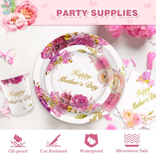 200pcs Mother’s Day Plates and Napkins Cups Serve50, Happy Mothers Day Party Supplies Decorations Flowers theme Tableware Set Disposable Paper Dinner Dessert Plates Cocktail Napkins Beverage Cups