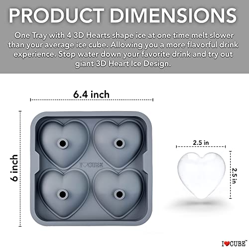 3D Heart Silicone Mold for Ice, Baking, Soap, and Resin | 2.5 Inch Large Heart Shape Cube Tray, Large Big Heart Molds, Chocolate Mold, Craft Ice Cube Mold for Cocktails, Beverages, Iced Tea Coffee