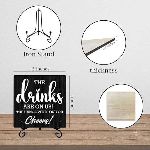 5" Bar Sign, The Drinks Are On Us! Cheers! Bar Table Decoration, Gifts For Colleagues, Bosses And Besties, Bars And Pubs Decorations, Bridal Shower Wedding Shower Decorations And Accessories- A05