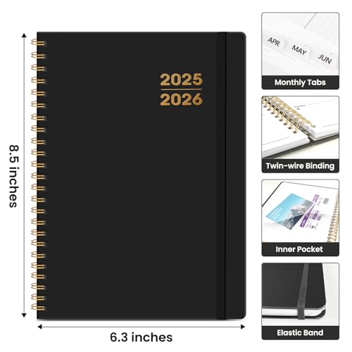 Academic Planner 2025-2026 For Women & Men, Monthly and Weekly Calendar Planner, Jul 2025 – Jun 2026, A5 (6.3" x 8.5"), Teacher Student Planning Book with Tabs, Ideal for Office School Supplies – Black