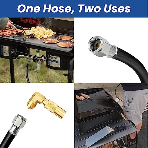 • đŸ”„ă€Two Ways for Using】By Using the propane elbow adapter, The propane line for blackstone griddle can be used for Blackstone 17″ and 22″ Tabletop grills. Without this propane elbow adapter, The propane regulator with hose can be used for blackstone 28″/36″ Grills, camp chef burner stoves, etc.