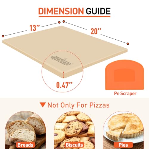 Arcedo Pizza Stone for Grill 20 x 13.5 Inch, Rectangular Large Baking Stone for Bread Thermal Shock Resistant BBQ Grilling Pizza Pan Cordierite Oven Cooking Pan With PE Scraper
