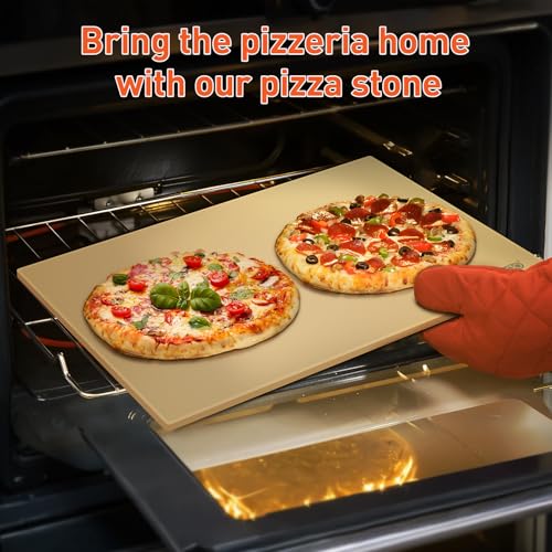This 20″ x 13.5″ pizza stone is a superior alternative to traditional pizza pan, offering excellent heat retention and distribution, and high durability. A must-have tool for any home cook or baker seeking professional-quality results and versatility in their kitchen.