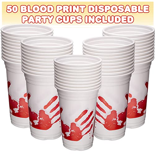 ArtCreativity Halloween Plastic Cups – 50 Pack Disposable 10oz Party Cups – Blood Print Drinkware for Kids & Adults, Scary Spooky Party Supplies, Horror Decorations, Haunted House & Trick or Treat