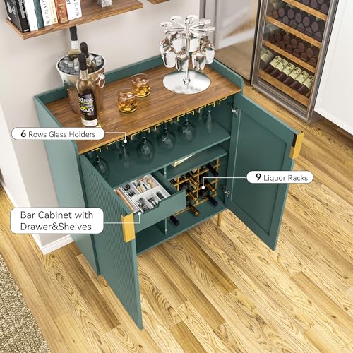 ARTPOWER Coffee Bar Cabinet with Wine Racks, Green Liquor Cabinet with Fluted Texture, Modern Sideboard Buffet Cabinet for Kitchen Dining Room, Living Room