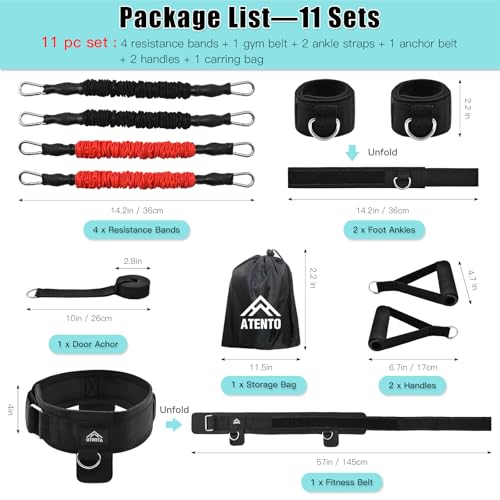 ATENTO 12 Pcs Set Resistance Bands for Legs and Butt, Fitness Elastic Band with Handles,Gym Belt, 4 Pcs Workout Band for Women & Men, Leg Day, Full Body Routine Exercise with Door Anchor, Ankle Strap