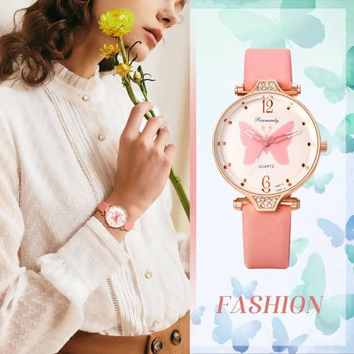 - 【FEATURES】5 Colors available; Slim band for women; Butterfly pattern dial; Rhinestone decoration bezel; Three-hand analog display; High hardness glass watch face.