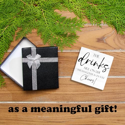 Bar Signs For Home Bar Bar Decorations For Home 5 Inches Bar Sign With Iron Support, The Drinks Are On Us! The Hangover Is On You Cheers! Bars And Pubs Decor, Bar Accessories(White) – D01
