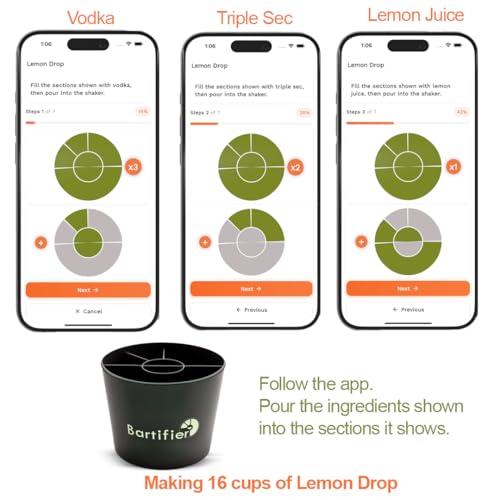 • FREE App-Guided Cocktail Making — Simple & Precise — The FREE Bartifier app shows you exactly which section to fill for each ingredient. Just fill that section to the top—no measuring cups, no bartending skills, no guesswork.