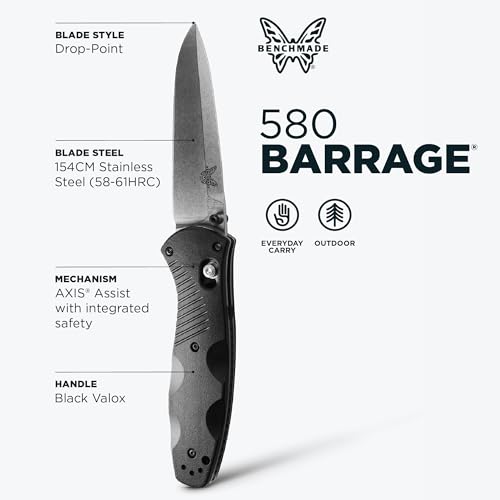 Benchmade – Barrage, Tactical, Every Day Knife, Plain Edge, Drop-Point Blade with Black Valox Handle (580)