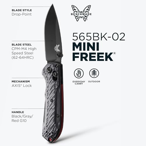 Benchmade – Mini Freek Outdoor EDC Knife, Drop-Point Blade with Gray/Black G10 Handle (565BK-2)