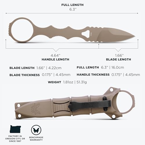 Benchmade SOCP Mini Dagger Tactical Spear-Point Blade, 440C Stainless Steel, Sand Handle with Tan Sheath