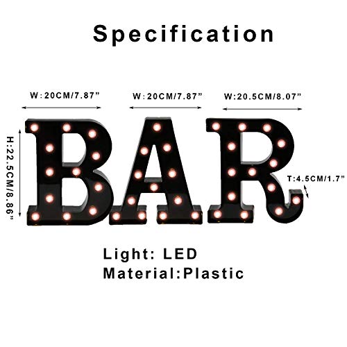 Black Bar Sign, Marquee Light Up Letters LED Marquee Number Lights Sign for Night Light Home Bar Christmas Lamp Birthday Party Wedding Decoration-BAR