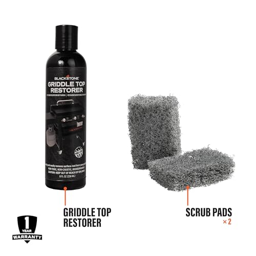 - Kit includes 8 ounces of Griddle Top Restorer and two scrub pads
