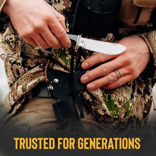 - Convenient Carry: Includes an imported genuine leather sheath with a snap fastener and belt loop for secure, easy field carry. The knife measures 8-1/4″ and the razor sharp blade is great for hunting, outdoor work, and more