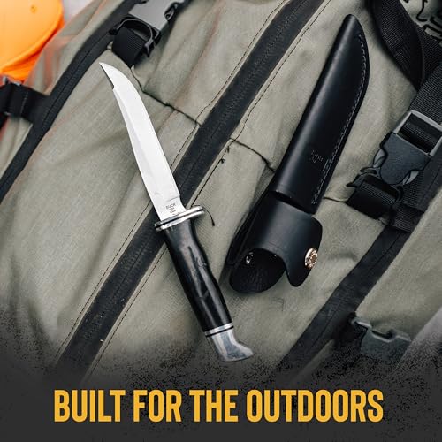 Buck Knives 105 Pathfinder Hunting Knife, 5″ Fixed Blade, Full Tang Design, Phenolic Handle, 420HC Stainless Steel Clip Point Blade, Leather Sheath Included, Knife Made in the USA, Black, 4.3 oz
