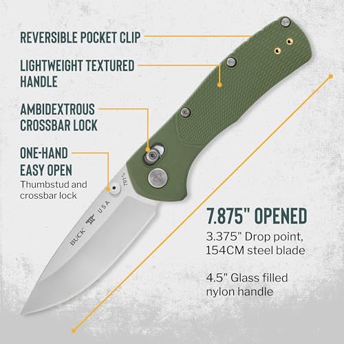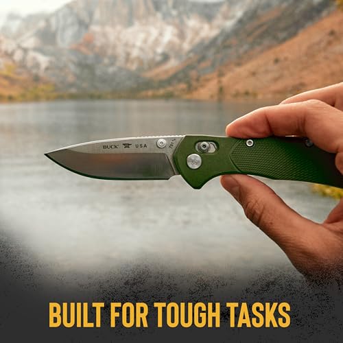 Buck Knives 791 Range Pro Folding Pocket Knife, EDC Knife, 3-3/8” Drop Point Blade, 154CM Stainless Steel, Glass-Filled Nylon Handle, Made in the USA, Green, 2.9 oz