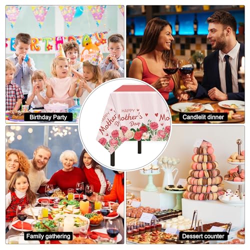 - Mothers Day Tablecloth for Party: 2Pcs pink mothers day plastic tablecloth, great for mothers day party supplies, birthday party decorations, mom birthday party supplies. The pink tablecloth with flowers, hearts and other designs. The mothers day party supplies with vivid color and classic pattern, which is a great way to create a festival atmosphere. The bright color and classic pattern will light up your party, caught everyone’s eyes