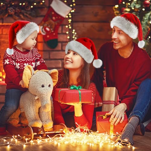 BSVI Christmas Hat, Santa Hats for Adults & Kids Red Velvet Comfort Extra Thicken Holiday Xmas Hat for New Year Festive Party