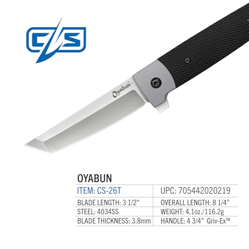 Cold Steel Oyabun 3.5″ 4034SS Tanto Point Razor-Sharp Blade 4.75″ Griv-Ex Handle Everyday Carry Pocket Folding Knife w/Spring Leaf Lock