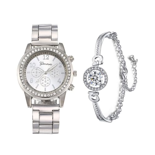 Dacdyi 3 Pcs Elegant Diamond Watches and Bracelet Set for Women Classic Round Dial Rehinestone Bezel Analog Quartz Ladies Watches