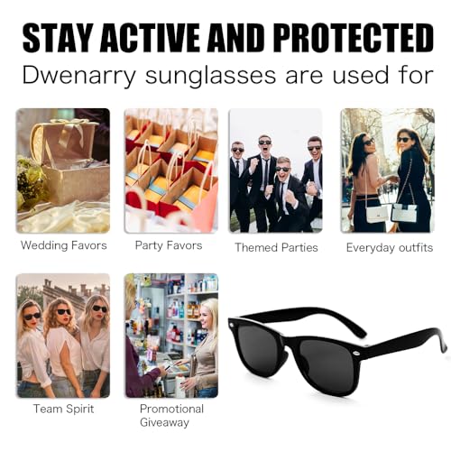 - Unique Design:Dwenarry black sunglasses bulk crafted with a classic one-tone black plastic frame and dark smoke lenses. Classic styles of party sunglasses are always popular with trenders. The black sunglasses make the unisex sunglasses cool. The black shades are the most classic sunglasses bulk. This trendy essential style 80s sunglasses is as versatile as it is easy to wear.