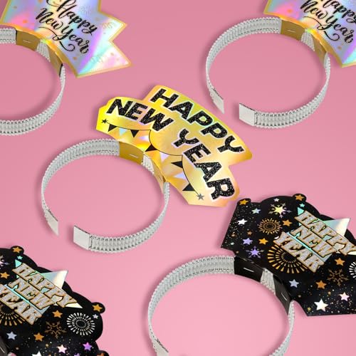 Fancy Land 12 Pack Happy New Year Hats Glitter Headbands 2026 New Years Eve Party Supplies for Adults Kids Women Men Hats NYE Tiaras Gold