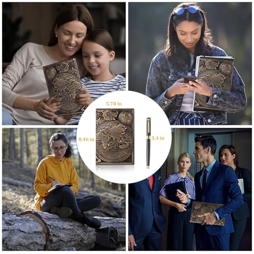 - ❤【Notebook Pen Set】Vintage 3D map embossed leather journal writing notebook * 1.Length x height dimensions: 5.78in x 8.46in. Black ballpoint pen business signature pen*1, dimensions: length 5.4in ( Dimensions are measured by hand). A5 size leather notebook, easy to carry, can be used as a travel journal.It is equipped with a black ballpoint pen, which is convenient to open the notebook at any time and record life/events with words