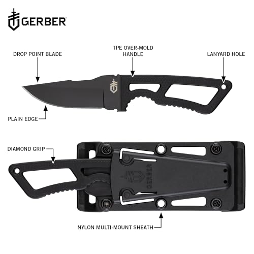 Gerber Gear Ghostrike Fixed 3.3″ Blade Knife – 420HC Stainless Steel with Black Ceramic Coating, Diamond-Texture Grip, EDC, Modular Sheath, Made in USA