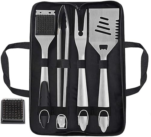 • Premium Quality: Our bbq tools are made of high-quality stainless steel; As a set of heavy duty barbecue tools, it is extremely thick and difficult to bend by hand, don’t worry about rusting or cracking; You can’t find a better barbecue tool set than this