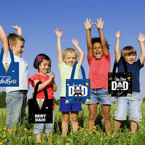 HABDJILTY 20 Pcs Father's Day Gift Bags Best Dad Treat Candy Goodie Bag with Handle Reusable Non-woven Gift Wrap Bags for Dad Grandpa Happy Fathers Day Party Favors Supplies Decorations