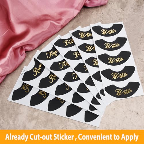 HALAGAS 6 Sets Label Stickers for BEV by Black Decker Cocktail Maker Glass Liquor Dispenser Bottles – Easy to Tear – No Adhesive Residue (Whiskey Vodka Rum Gin Tequila Water)(Black Gold)