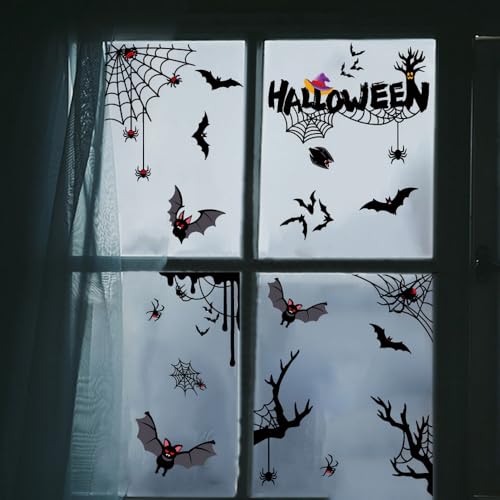 - Meet your different needs :2 sheets quality PVC halloween window decals with different shapes and sizes. Unique Bats, Black Bats Spiders, Haunted House pattern designs will add a personal touch to all your Halloween party favors