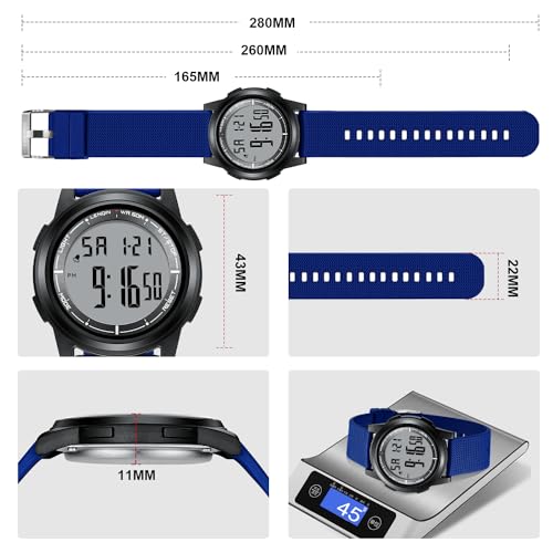 - 【Mens Digital Watch】⌚ Simple and easy-to-operate functions, with Waterproof, 12/24 hours switch, alarm clock, hourly alarm and daily alarm, Auto Date, Stop Watch, LED Light