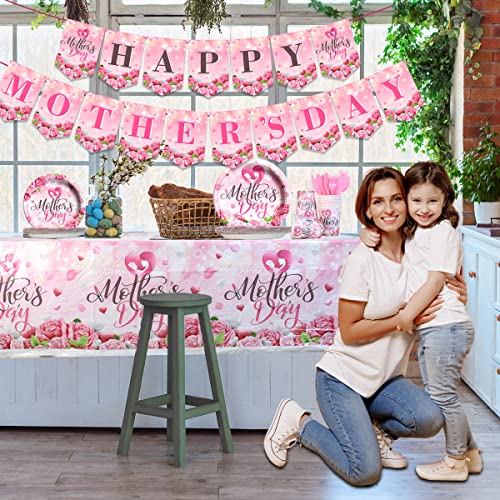 - 💗【MOTHER’S DAY TABLEWARE】Happy mothers day!The pink mother’s day tableware set will meet your party needs.It includes 1pc happy mother’s day banner,20pcs 9inch pink plates,20pcs 7inch plates,20pcs 9oz cups ,40pcs napkins,20pcs forks knives and 1pc plastic waterproof tablecloth. You can easily create warm holiday atmosphere, giving your party a very formal and unique feeling.