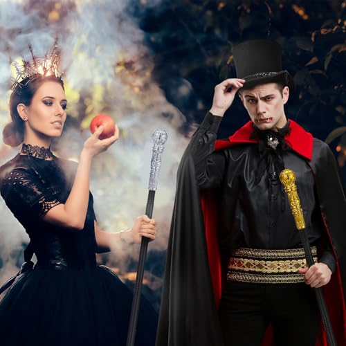 - Elegant Cane Set: the package includes one gold and one silver style pimp cane, suitable for a variety of Halloween costumes; Ideal for dressing up as a queen, king, wizard, and more; Exudes enchanting charm wherever you go