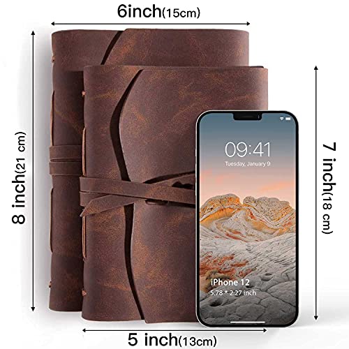 - 📜HANDCRAFTED FROM LEATHER: Each journal notebook is specially designed and handmade from premium genuine leather.A long leather strap ties around the journal notebook to close securely. Delicate hand stitching to gives you a top-notch writing experience.The cover and edges of each book have been specially treated. Soft feel, not easy to produce scratches, not easy to discolor.