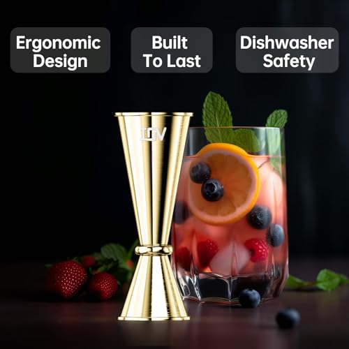 • PREMIUM DESIGN: Igniting your obsession for vibrance! IOV designed the jigger in colorful colors, making it vibrant. The polished mirror finish gives it a modern look, versatile and elegant bar measuring jigger that lets you pour with confidence. This cocktail jigger is also dishwasher safe.