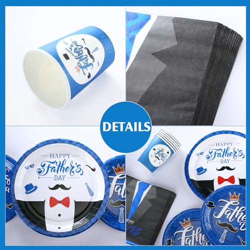 - Father’s Day Party Set: this Father’s Day tableware decoration will meet your party needs; It includes 1 set of Happy Father’s Day banner, 20 9 inch plates, 20 7 inch plates, 20 cups, 20 napkins, 20 knives, 20 forks and 20 spoons, 1 Father’s Day tablecloth, and 24 Father’s Day balloons