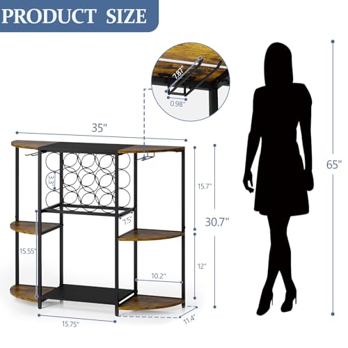 • 【Spacious Storage Capacity】This wine rack table measures 35.4×30×11.4 inches. It has a large tabletop and five open – style shelves. The open shelf design is versatile. It's great for placing wine glasses, cups, wine bottles, artworks, and can also hold irregular shaped wine bottles, mixology gear, ice buckets, coffee items, etc. It meets your various storage needs, making your space neat and organized.