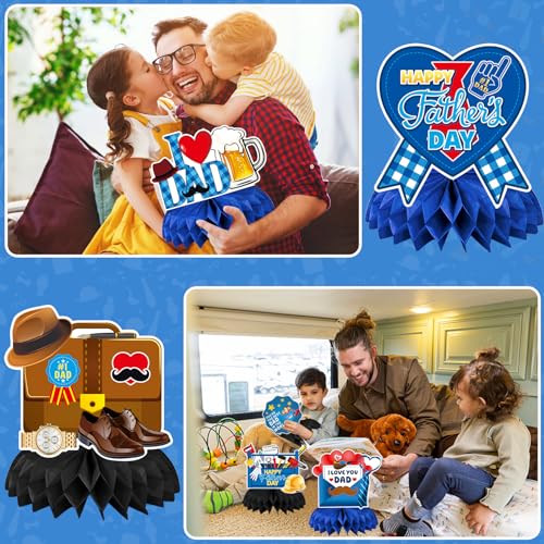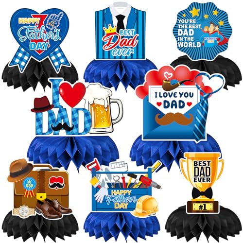 JULMELON 8PCS Fathers Day Party Decorations Honeycomb Centerpiece, 3D Double Side Happy Father’s Day Centerpieces Table Decor for Party Dad Birthday Decorations Party Supplies