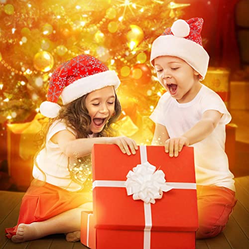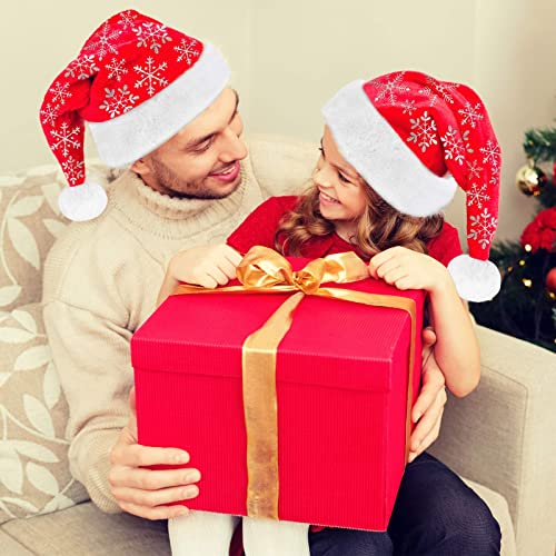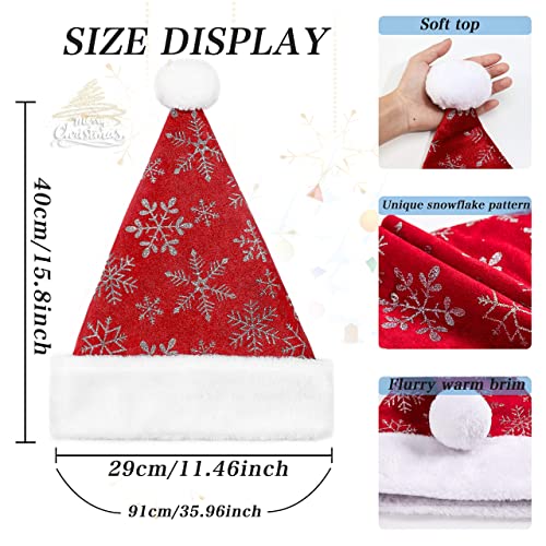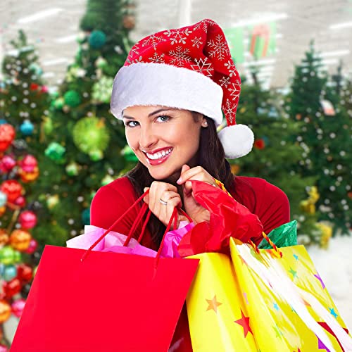 LessMo 4 Pcak Christmas Santa Hat, Santa Hat Adults Christmas Hats, Reusable Double Liner Plush with Snowflake Pattern, for Children Kids Christmas New Year Festive Holiday Party Supplies