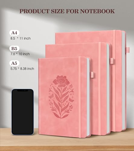 - ăBeautiful Cover Designă A5 notebooks for work with gorgeous flower pattern embossing design that is comfortable to the touch, perfect for gift giving. Perfect as a graduation gift,, Mother’s Day gift, Christmas gift, New Year’s gift or birthday gift, etc. Multiple colors to choose. The design is sunk into the cover. Unlike other shiny leathers, our leather feels comfortable and close to suede.