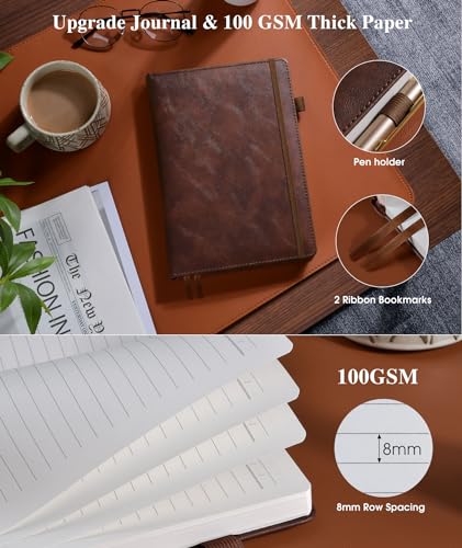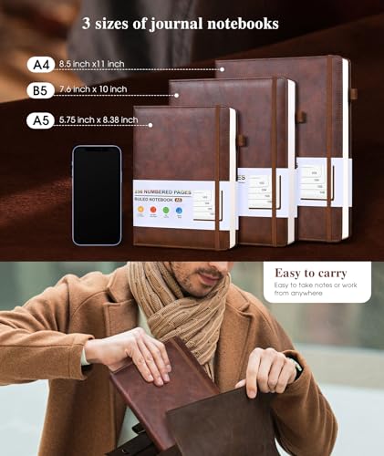 • 【A5 Hardcover Leather Journal Notebook】 Small a5 size 5.75"x8.38" notebooks, standard 8mm space classic college ruled journals. Made from high quality hardcover leather and have a sumptuous vintage look and a comfortable touch. What's more, the sturdy and water-resistant hard cover can protect the inside of the page better than a soft cover and provides a comfortable writing surface.