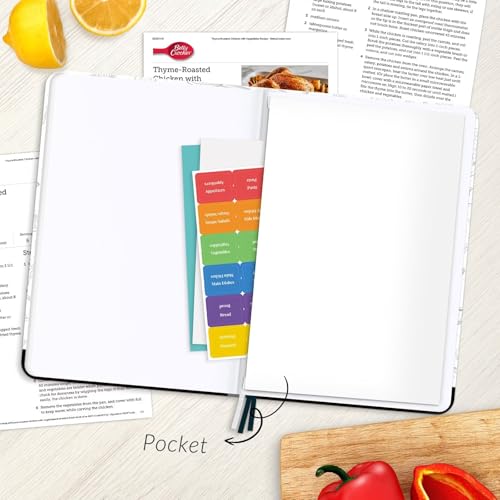 • ​​User-Friendly Design​​-Measuring 5.7″x8.4″, this practical recipe notebook features a ​​lay-flat binding​​, ​​elastic closure strap​​, ​​3 ribbon markers​​, and a handy ​​back storage pocket​​ for effortless recipe keeping.
