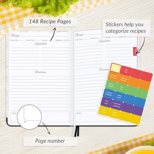 • Generous Writing Space-​​ Contains 148 individual recipe pages, each providing ample space to record ingredients, instructions, and personal cooking notes.